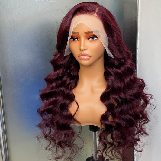 HUIXIN Wine Red Body Wave 13x4 Transparent Lace Frotnal Wig 22”