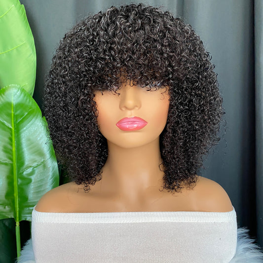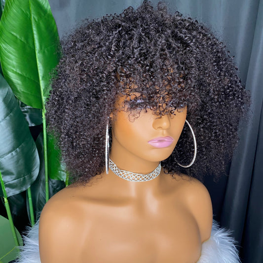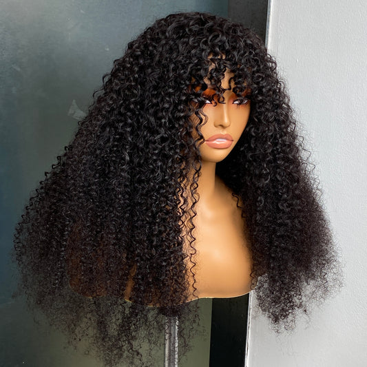 Top Quality 100% Raw Thick Human Hair Kinky Curly Regular Bang Wig