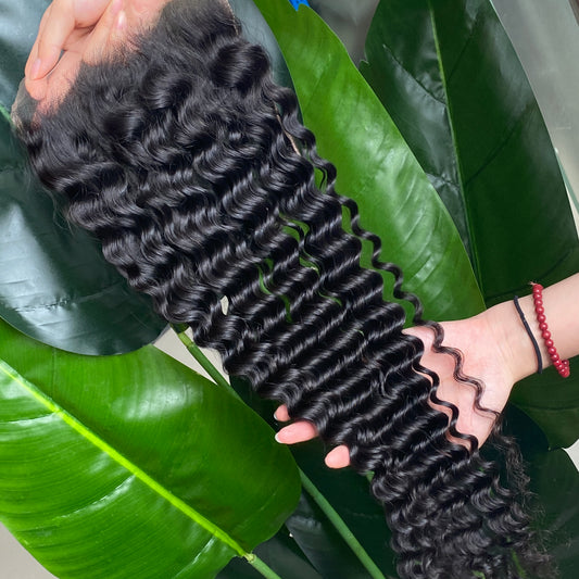 Raw Human Hair Deep Wave 13x4 HD Lace Frontal Hair Extension 12-20 Inch
