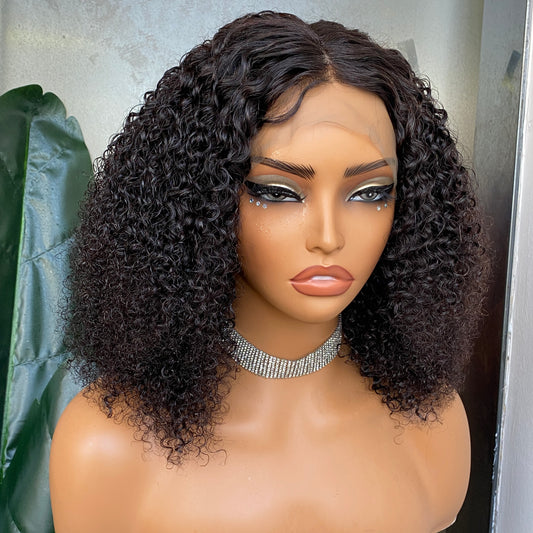 100% Human Hair Kinky Curly 360 Brown Lace Frontal Wig 12 Inch