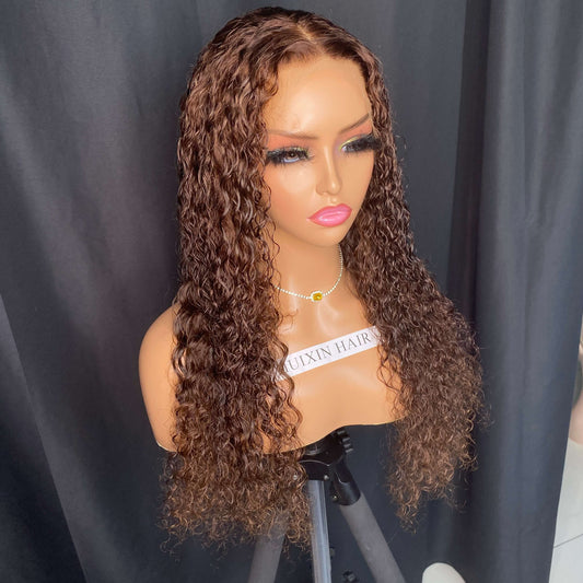 Brown Color Deep Curly 13x4 HD Lace Frontal Wig 20”