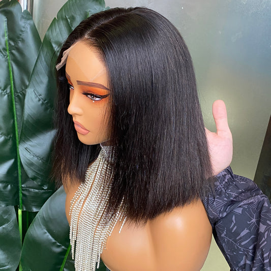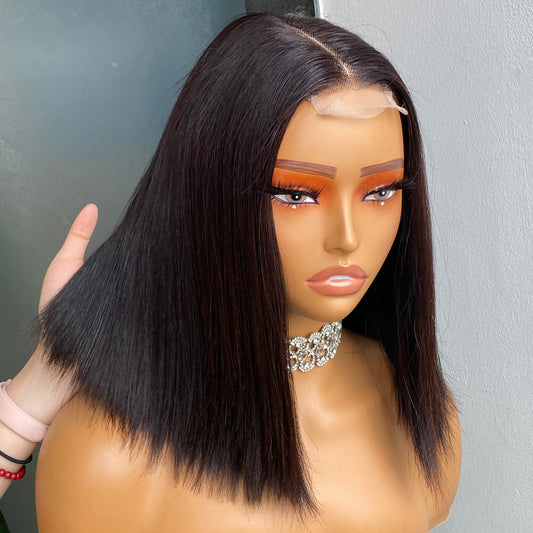 Straight Double Drawn Human Hair Short Bob 5x5 HD Lace Closure Glueless Wig 10 Inches