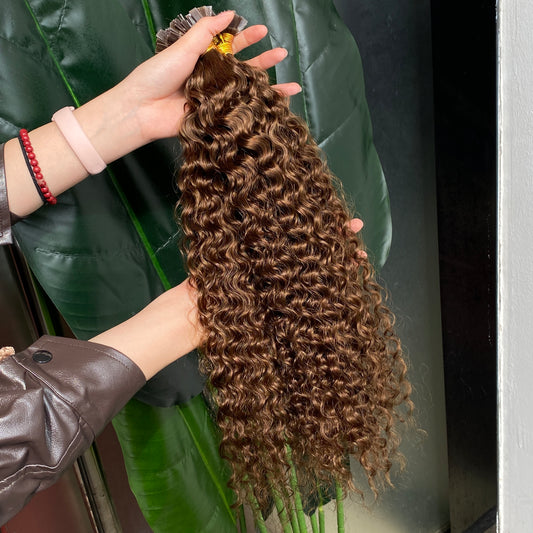 Raw Human Hair Brown #4 Kinky Curly Flat Tip Hair Extension 50g/pcs 3pcs