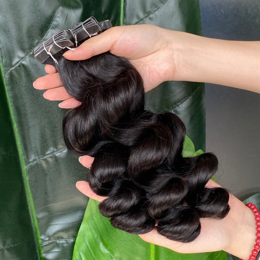 100% Raw Human Hair Loose Wave Tape In Hair Extension 60Pcs 150g