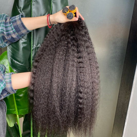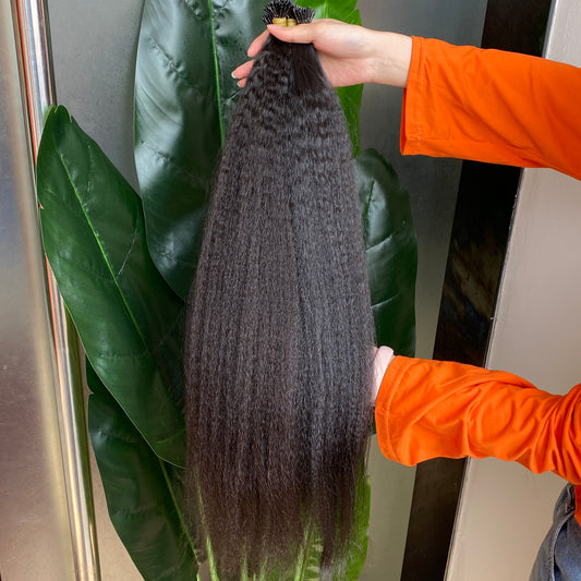 100% Raw Human Hair Natural Black Kinky Straight I Tip Hair Extension 50g/lot 3 lots
