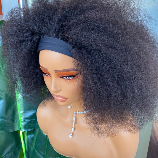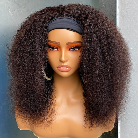 180% Density Human Hair Kinky Curly Headband Wig 8-30 Inch